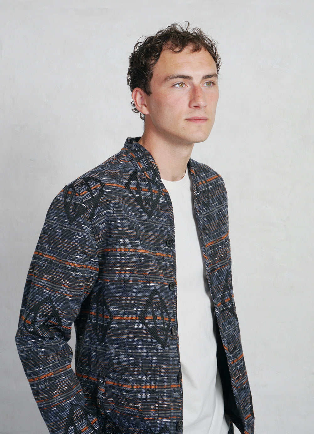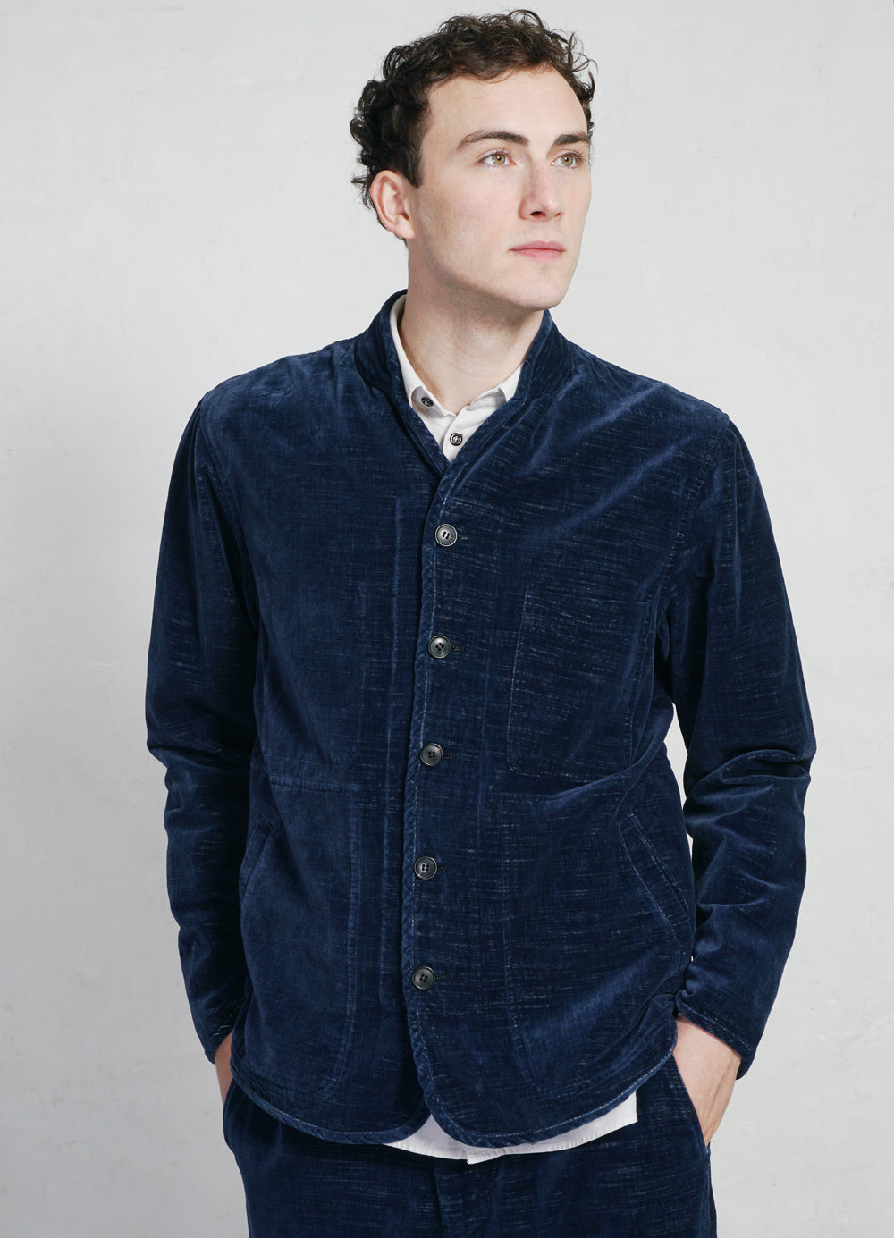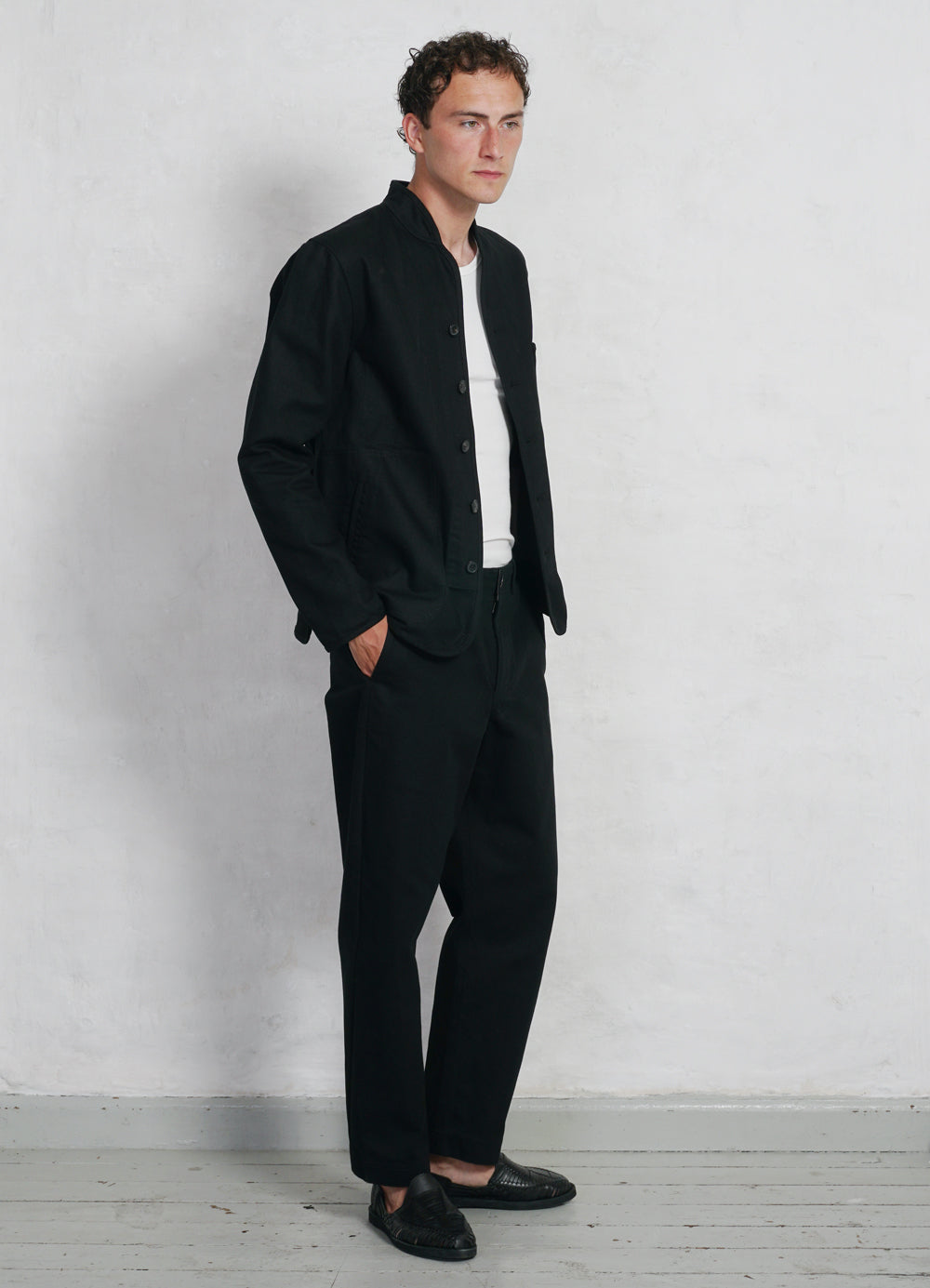 Based on an Asian workwear jacket, ERLING makes an appearance in most HANSEN collections, be it in simple plain fabrics or something a little more special. It is regular fit with a stand collar, slanted side pockets and inside patch pockets. The curved hems are bound rather than conventionally hemmed, adding to the utilitarian vibe.