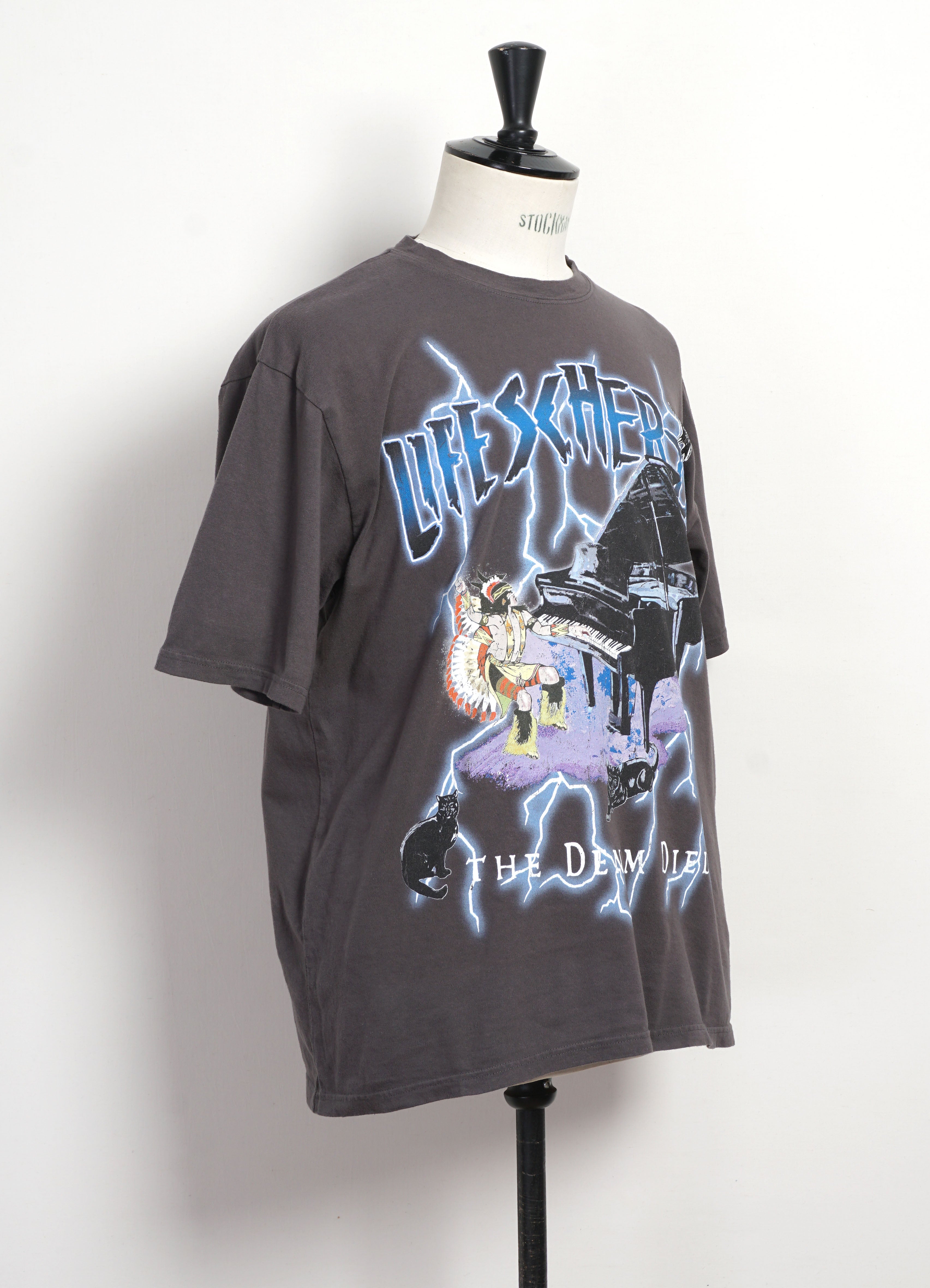 Pieces from other brands make up a huge part of our collection. The Mountain Research thermal hoodie is a practical piece of techwear. It is made from a waffle knit jersey material and the fabric is doubled up at the front of the neck and the lower back. This is a piece designed for bearing the cold temperatures protesting can find you in. There are multiple other pieces of protest wear from Mountain Research, such t shirts with ‘No future’ and ‘Solidarity’ slogans on them.