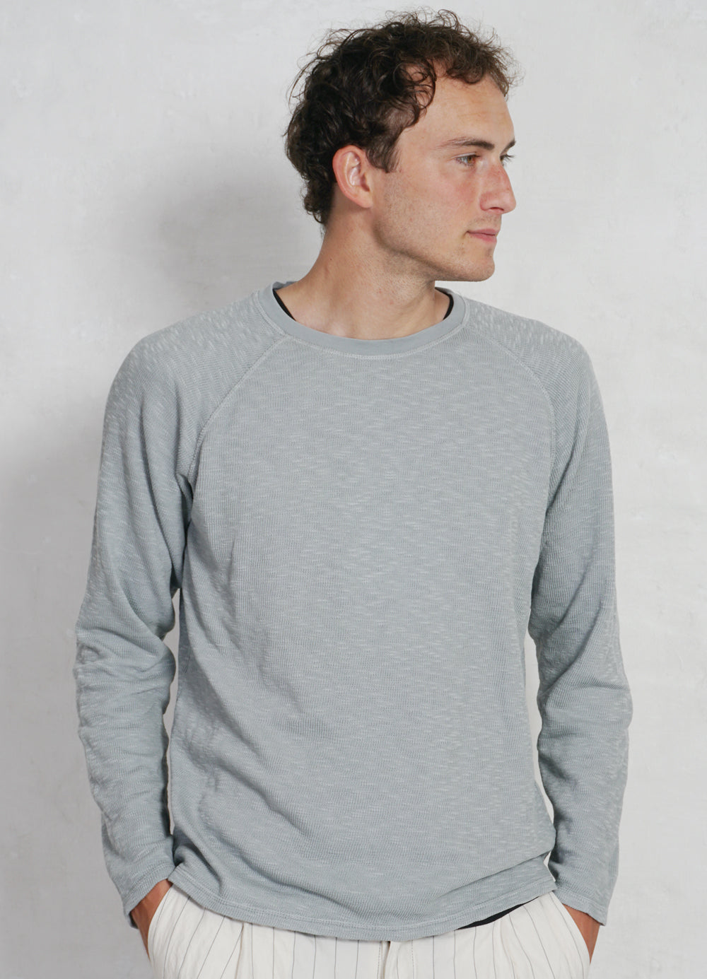 FELIX is the HANSEN version of an essential long sleeved t-shirt. It has raglan sleeves and flat-lock stitching to give a sporty attitude but the fabric elevates it to something a lot more interesting and luxurious. The fit is easy and comfortable though the cotton herringbone tape in the inside neck means it won’t lose its shape.