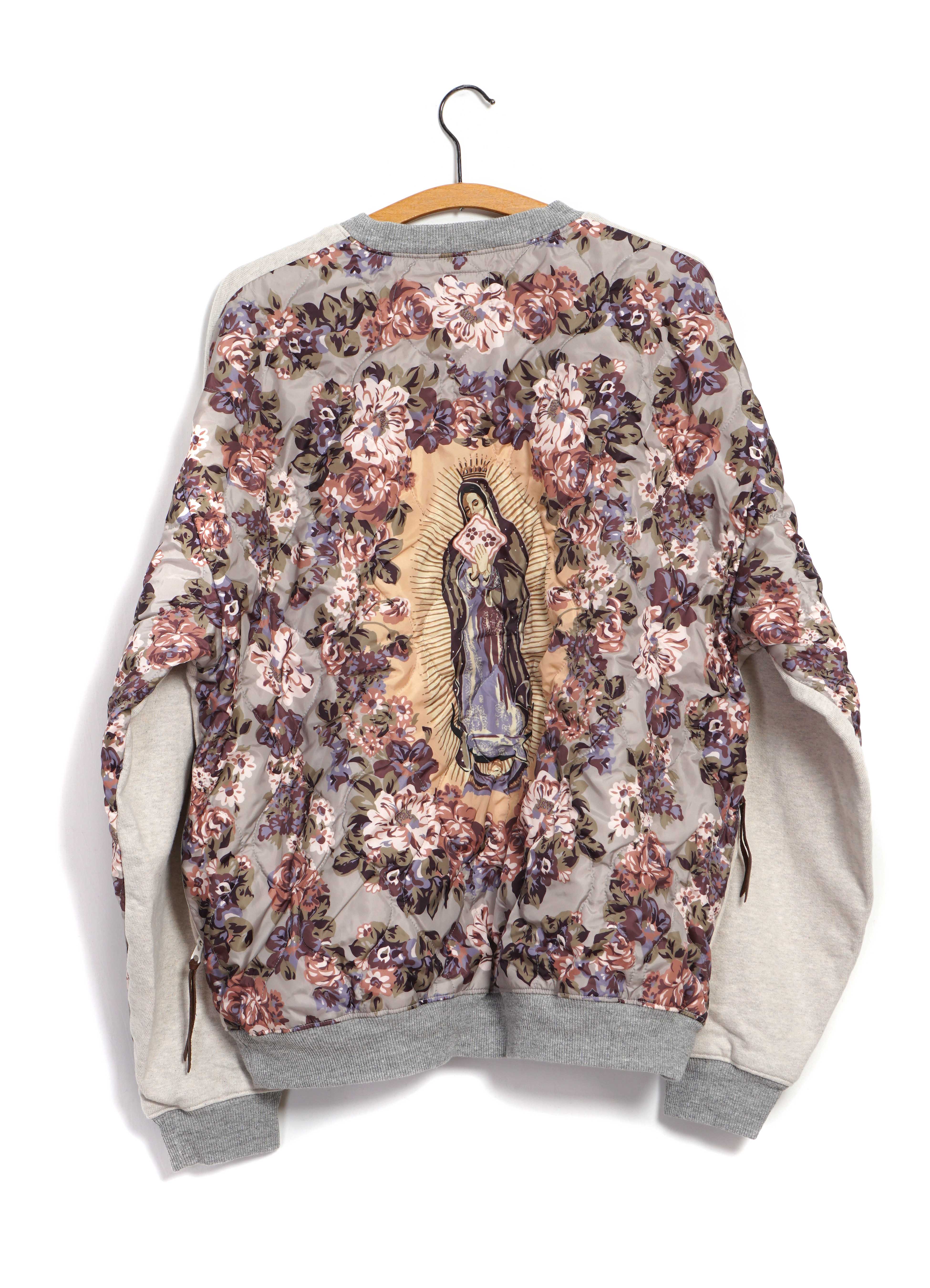 Pieces from other brands make up a huge part of our collection. The Mountain Research thermal hoodie is a practical piece of techwear. It is made from a waffle knit jersey material and the fabric is doubled up at the front of the neck and the lower back. This is a piece designed for bearing the cold temperatures protesting can find you in. There are multiple other pieces of protest wear from Mountain Research, such t shirts with ‘No future’ and ‘Solidarity’ slogans on them.